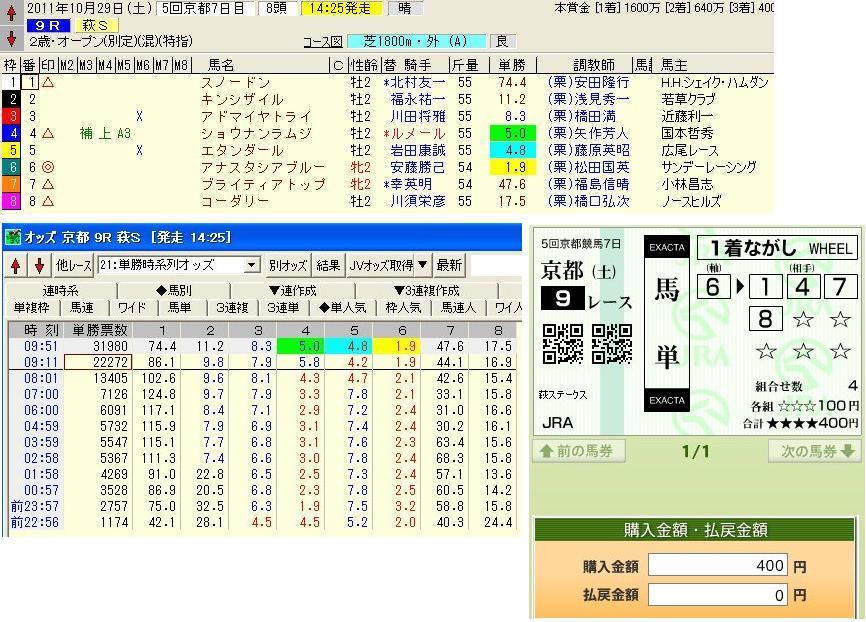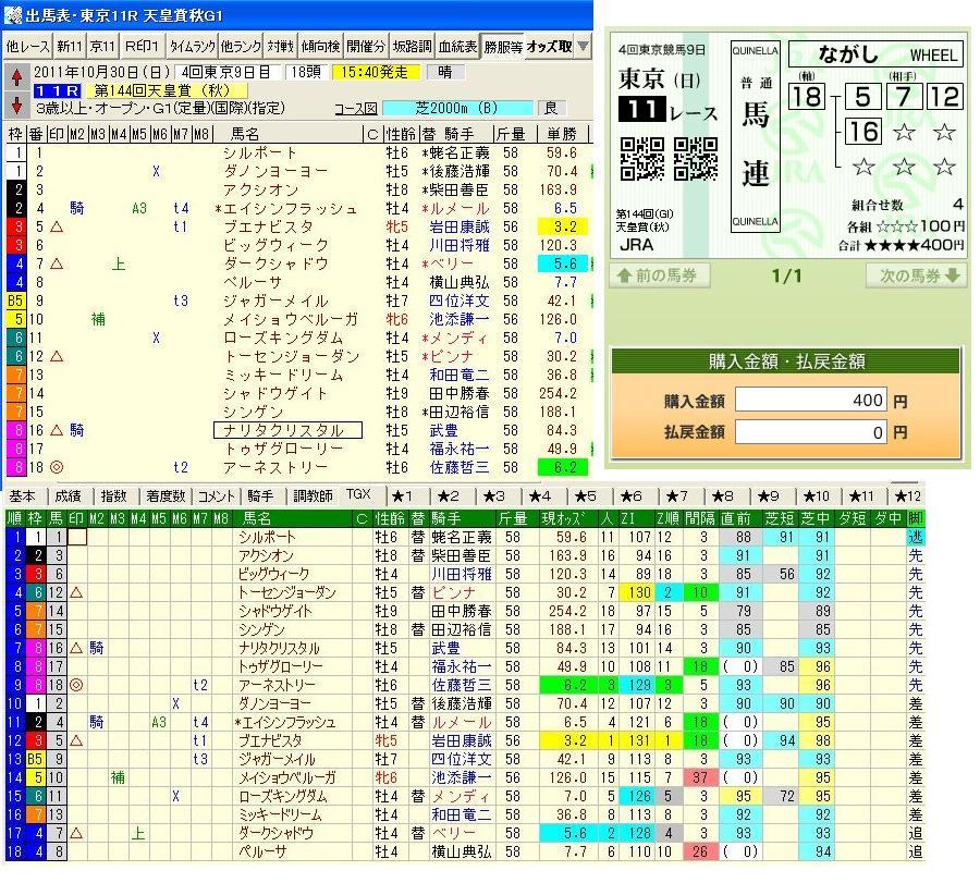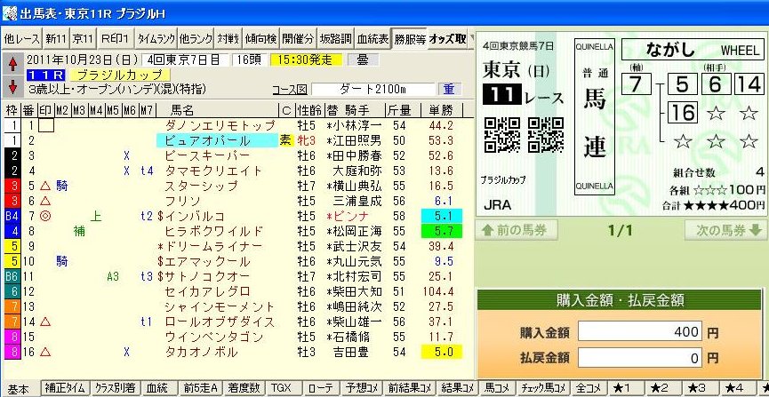 東京11Rは配当は低いですがうまく的中できました。