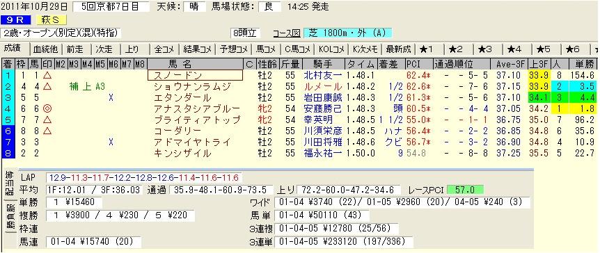 京都9R 萩ステークス 2才オープン 芝1800