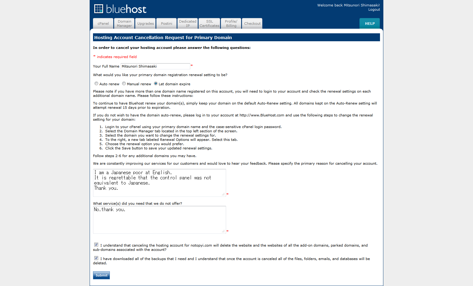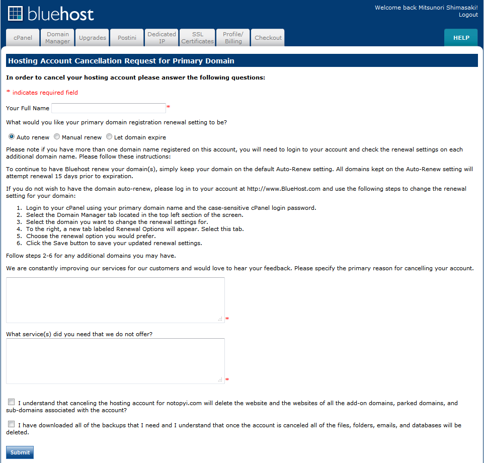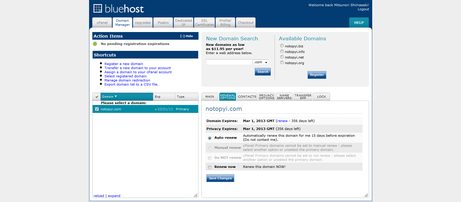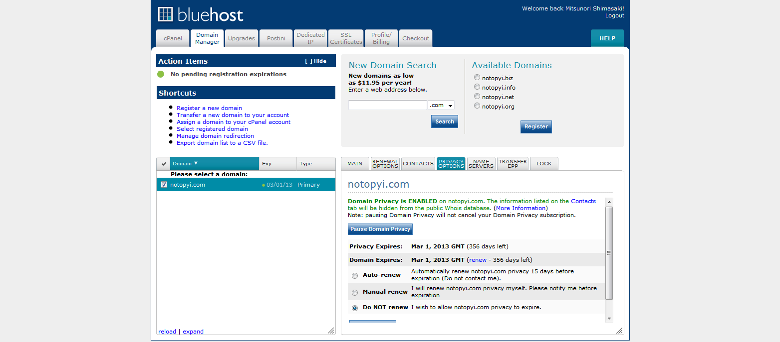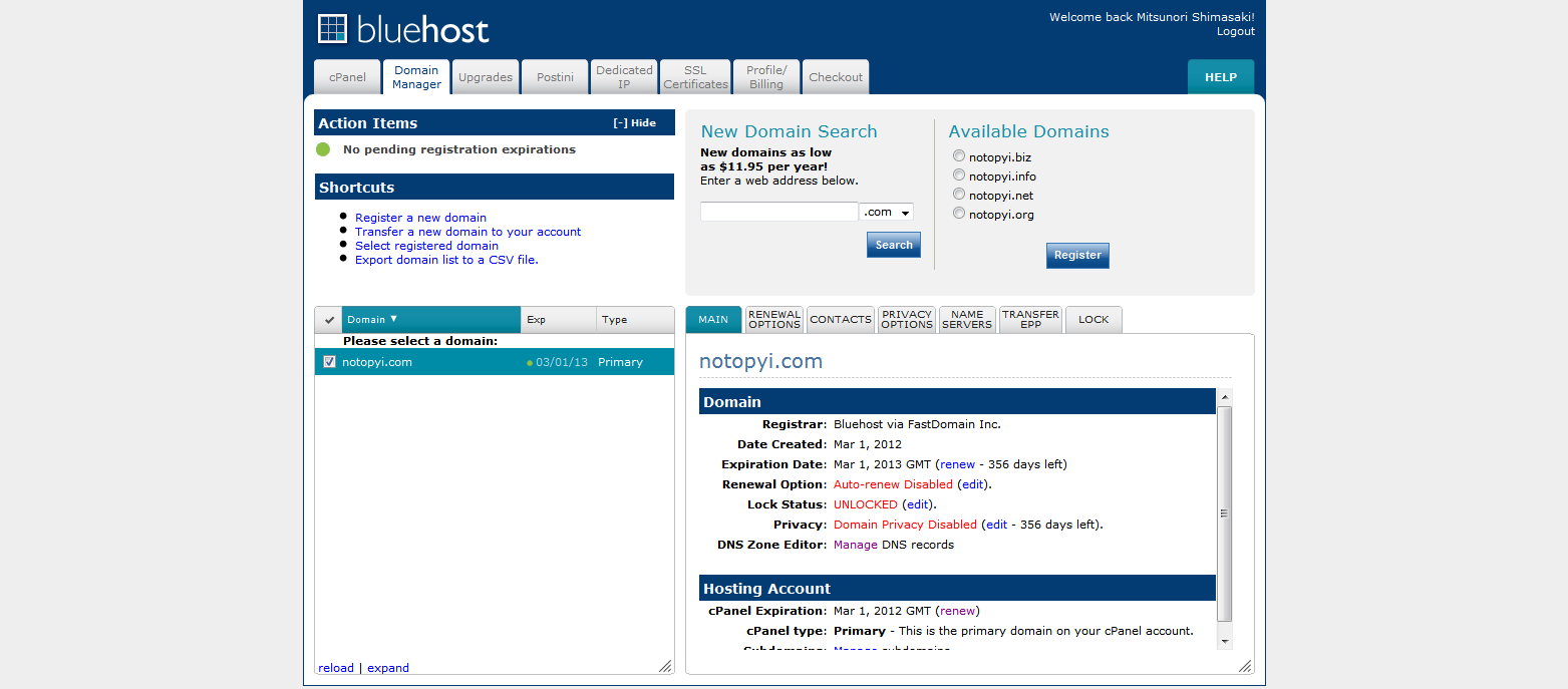 1.アメリカのサーバーのブルーホストを借りようとした。