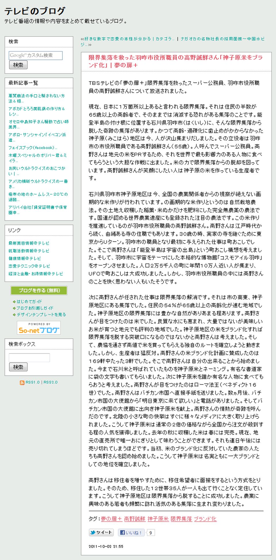 テレビのブログ 2011-10-02 http://tv-blog.blog.so-net.ne.jp/2011-10-02