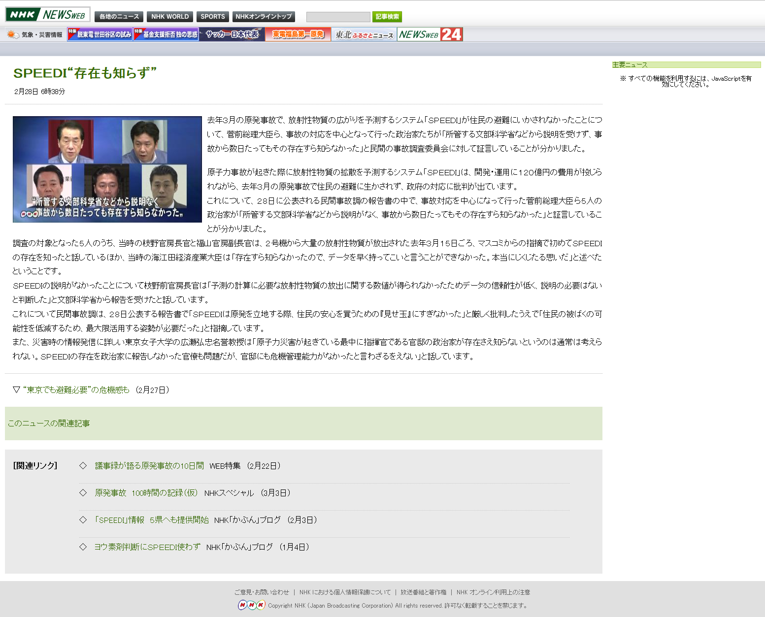SPEEDI“存在も知らず” NHKニュース2月28日 6時38分