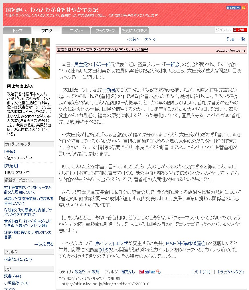 - 2011.04.11 菅直人にはもう少し総理を続けてほしい