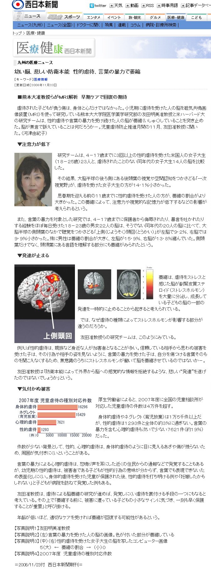 幼い脳、悲しい防衛本能 性的虐待、言葉の暴力で萎縮