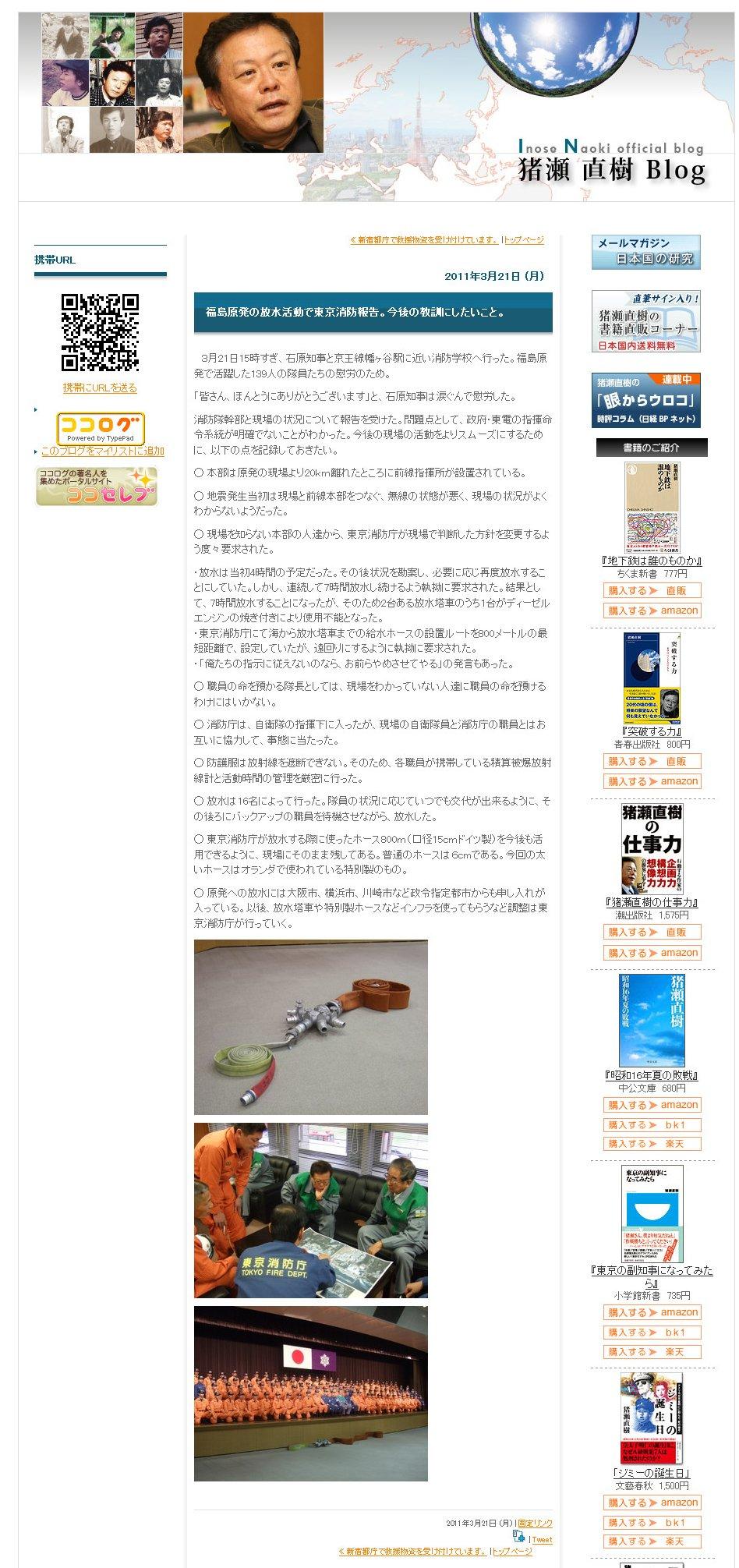 東京都副知事の猪瀬さんのブログでは誰が言ったのか出てませんが