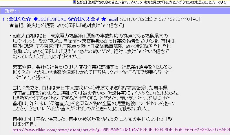 - 2011.03.24 菅直人がテレビカメラの前で野菜を食べない理由